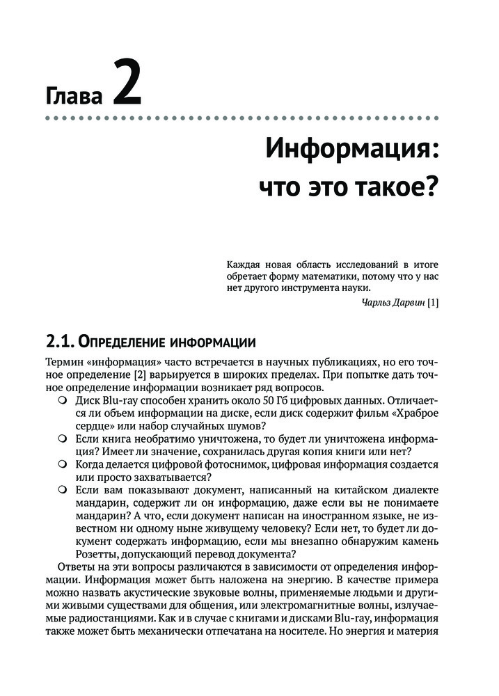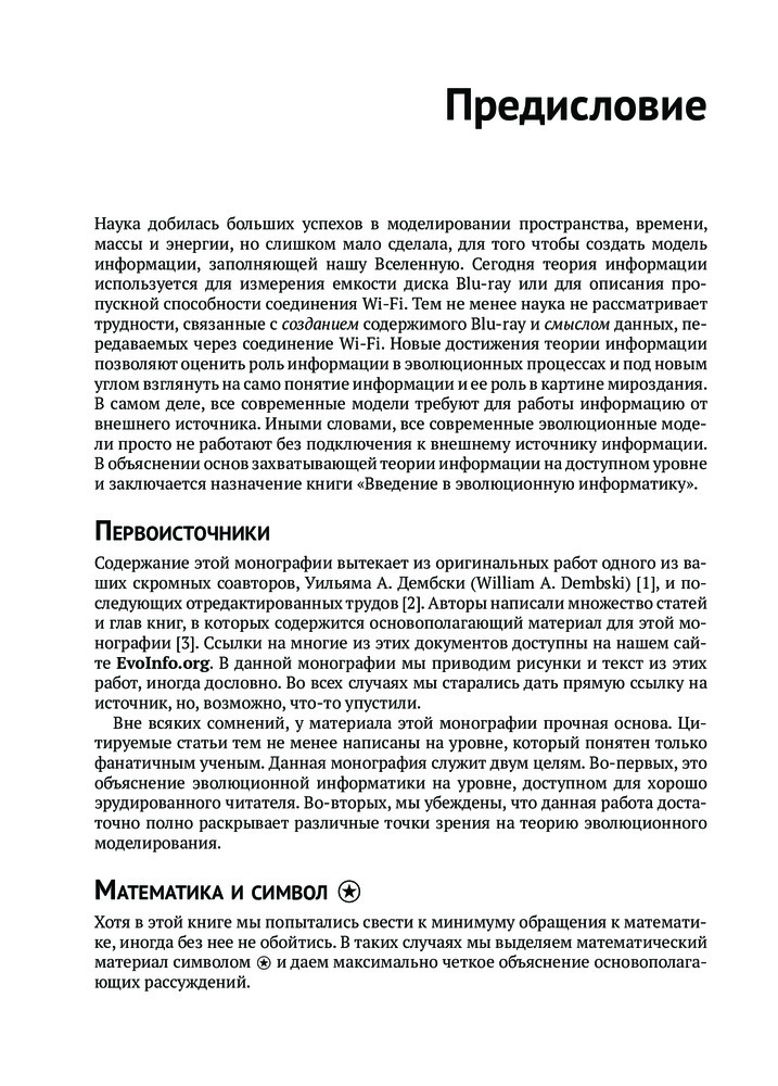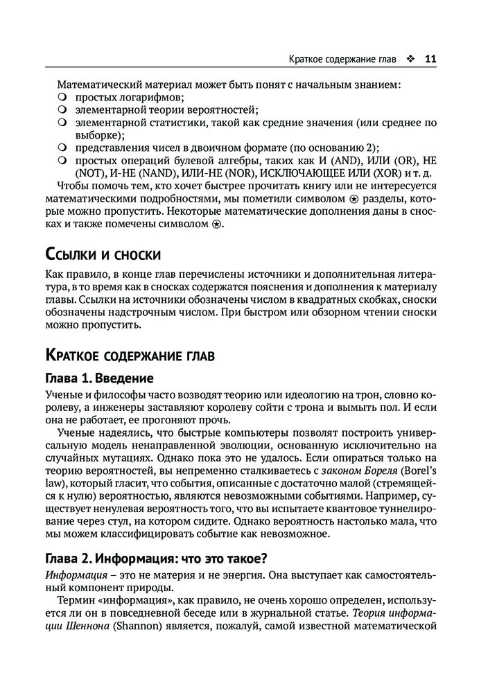 Если читатель стремится бегло охватить тему или не интересуется математическими подробностями, он может пропустить разделы, отмеченные специальным значком, и все равно испытает восторг от знакомства с новой захватывающей моделью информации о природе.