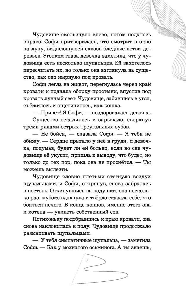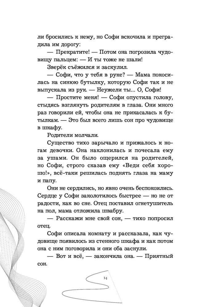 Мне понравилось это произведение. Вообщем-то, почти всегда мне нравится то, что я беру в руки почитать. Если честно, то правильнее будет удалить из предыдущего предложения слово «почти». Из того, что мне в этой книге понравилось больше всего, я бы отметила: Говорящих монстров, то, как прописаны переживания глав. героини, сама идея книги, а так же особая атмосфера. Без минусов тоже не обошлось: сюжет немного предсказуем. Но книга вошла в категорию «Перечитаю и друзьям посоветую».