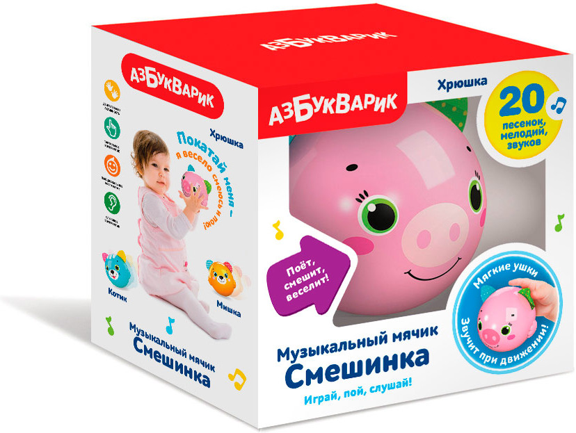 Азбукварик Игрушка музыкальная «Хрюшка»В данный момент этот товар отсутствует в продаже. Возможно, у нас найдется аналогичный или похожий товар здесь. Серия: Музыкальный мячик Смешинка Веселый мячик в виде свинки порадует любого малыша! У него мягкие ушки, которые так приятно трогать! Нужно просто включить игрушку — мячик будет весело смеяться и петь песенки. Звучит при движении! |