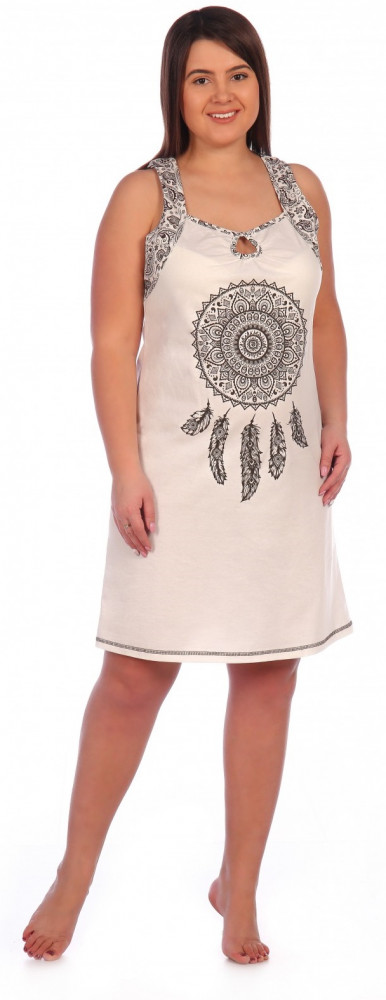 Красивая. Тонкая ткань, х.б. Прозрачная. На модельке на фото под сорочкой что то типа лифа еще есть, иначе все просвечивает. Для ночнушки норм. Если ходить по дому то с нижним бельем. Стройнит.