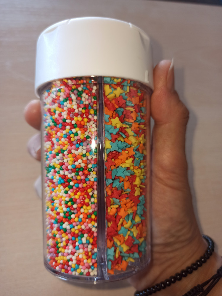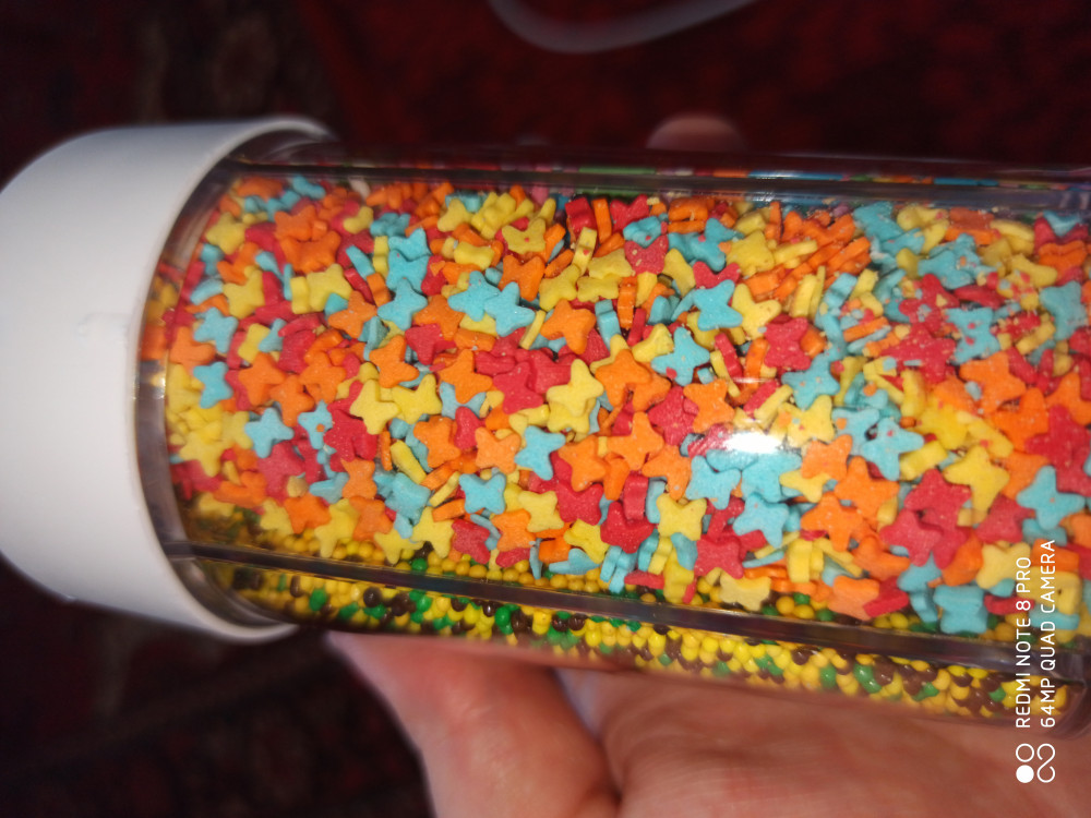 Посыпки и баночки превзошли мои ожидания. Удобная баночка, посыпки разные. Все говорили какая красота. Всем советую.