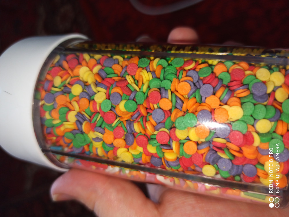 Посыпка понравилась, большой объём, хороший срок хранения, удобные ячейки в баночке. В общем, все понравилось! Спасибо!!!