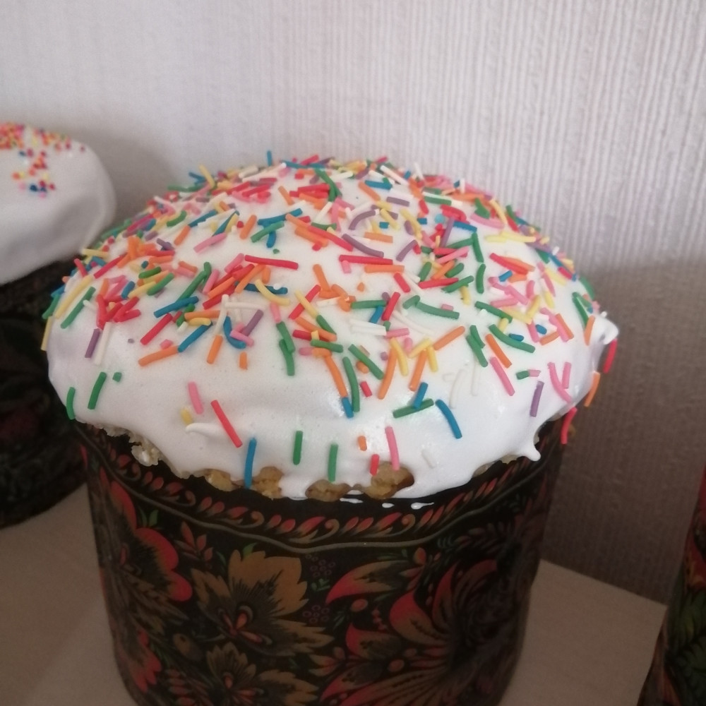 Очень хорошая посыпка, красивая, практически не плывёт на креме. Краска не слишком яркая ближе к естественному цвету, природному. Использовала во время Пасхи, хватило на тридцать куличей ещё и осталось.