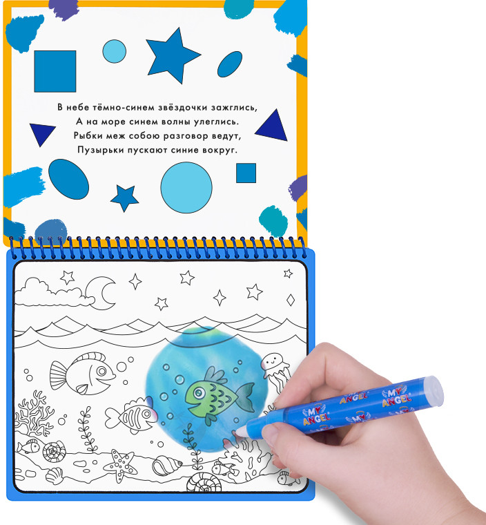 My Angel Книжка-раскраска водная «Изучаем формы и цвета»В данный момент этот товар отсутствует в продаже. Возможно, у нас найдется аналогичный или похожий товар здесь. Учите с детьми формы и цвета с помощью красочной водной раскраски. Все, что от вас требуется, — заправить маркер из комплекта водой. Малыш проводит маркером по странице и видит, как, словно по волшебству, проявляется яркая цветная картинка. Поиграли и заодно еще и получили знания о различных формах и вариантах цветов. Магия? Нет! Просто водная раскраска «My Angel». |