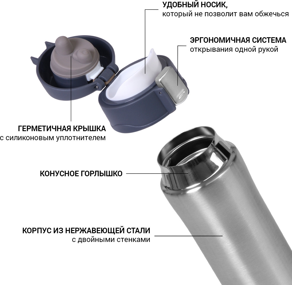 Отличная термокружка... Зимой особенно актуальна для тех, кто следит за питьевым режимом... В бутылочках вода охлаждается, в термокружке держится достаточно долго, проверяла с кипятком. Также удобна сама по себе, легкая и удобная в обхвате руки. Товаром довольна, рекомендую.