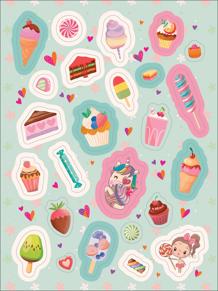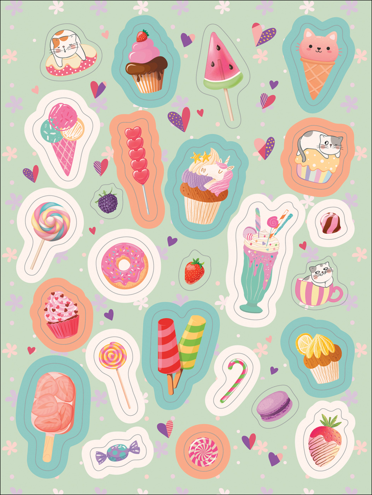 100 наклеек. Самые вкусные наклейки-30% +22 красивые яркие милые