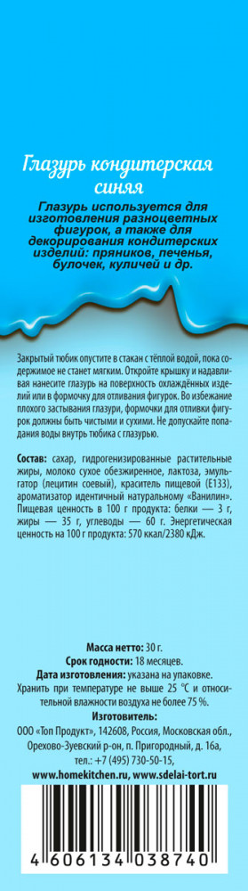 Приобрела все цвета данной глазури.И уже опробовала для росписи рождественского печенья.Тюбики небольшие, с острым носиком,что позволяет украсить тонкой росписью изделие. Перед употреблением согласно инструкции выдержала тюбики в кипятке носиком вверх, а потом размяла руками.На вкус ничего особенного,сладенько.Если украшать смазанное изделие расход небольшой.В общем-то осталась довольна.