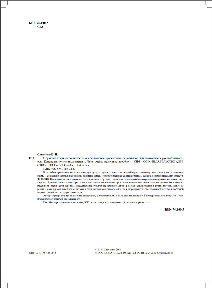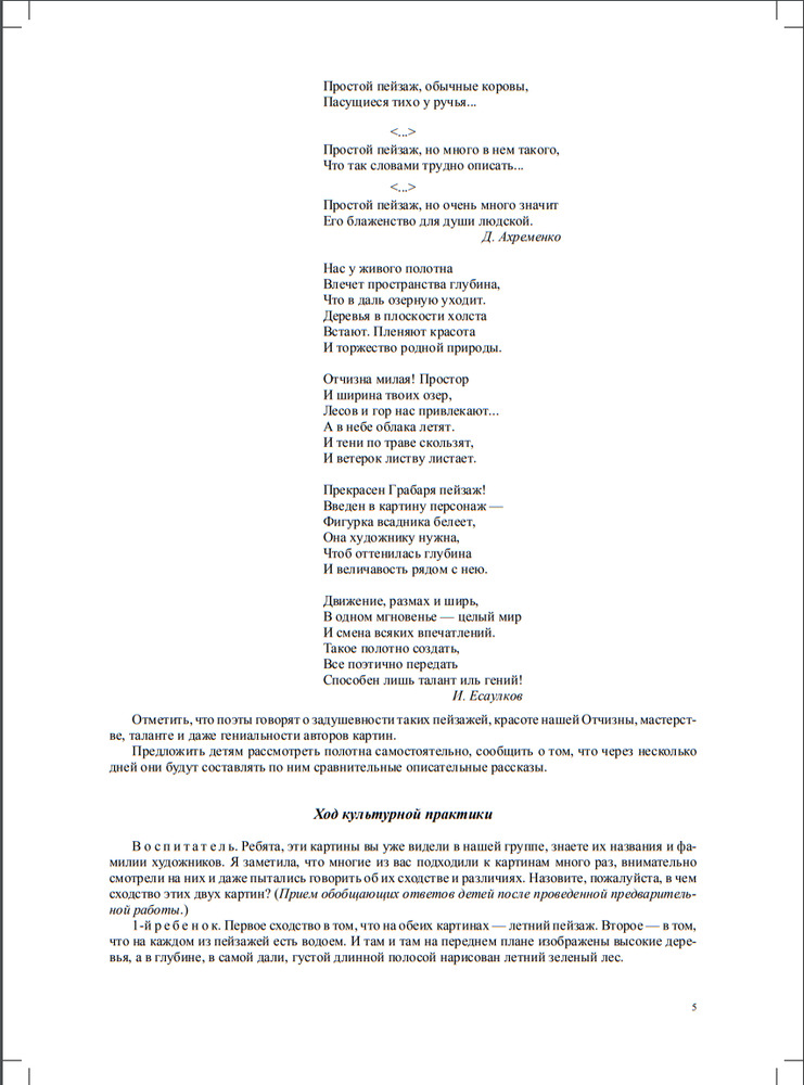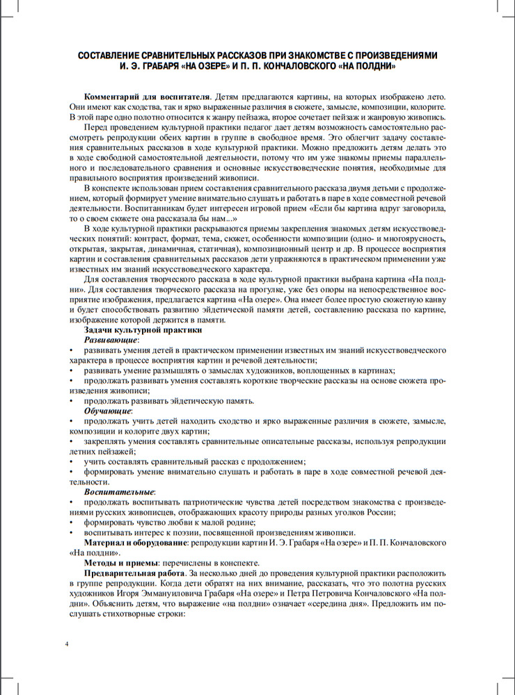 Обучение старших дошкольников составлению сравнительных рассказов при знакомстве с русской живописью 5-7 лет. Конспекты культурных практик. Лето. ФГОС+74