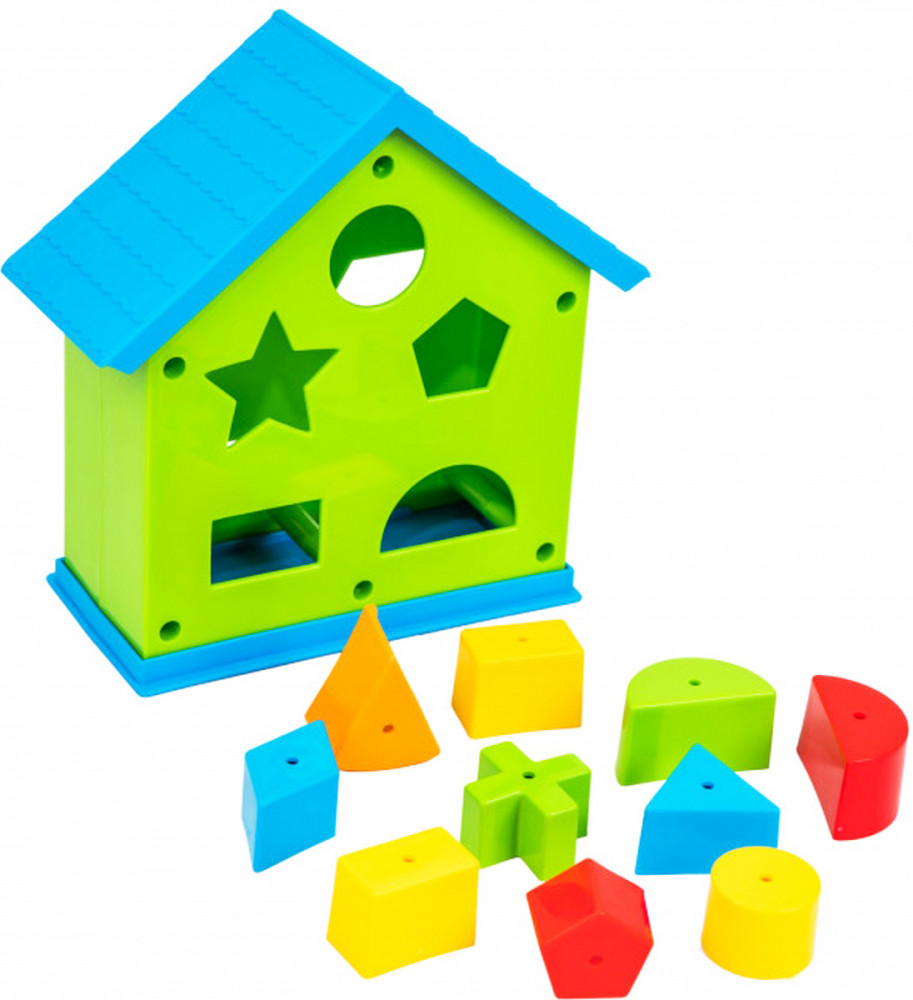 Игрушка создана в виде яркого домика. В сортер нужно проталкивать фигурки разной формы, для которых ребенок должен подобрать соответствующее отверстие. В наборе домик, 10 фишек разных цветов и форм, к которым малыш должен найти соответствующее отверстие в домике.