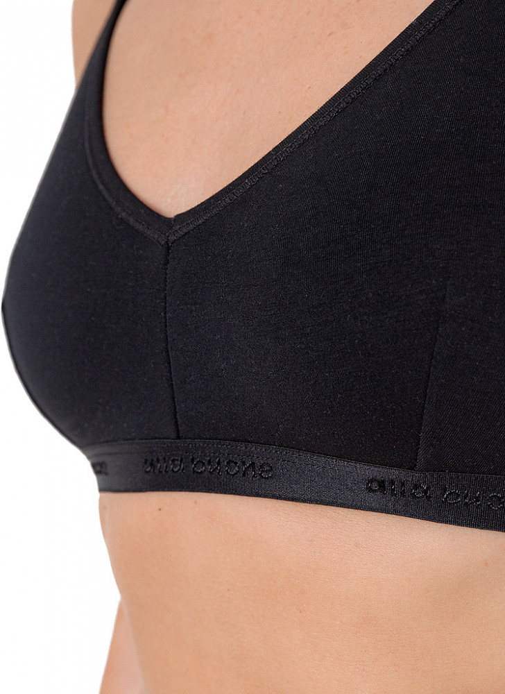 Понравилось качество материала - 95% хлопка, это то, что надо, особенно для лета. Взяла универсальный цвет nudo. Резинка узковата. С более широкой он бы лучше поддерживал грудь.