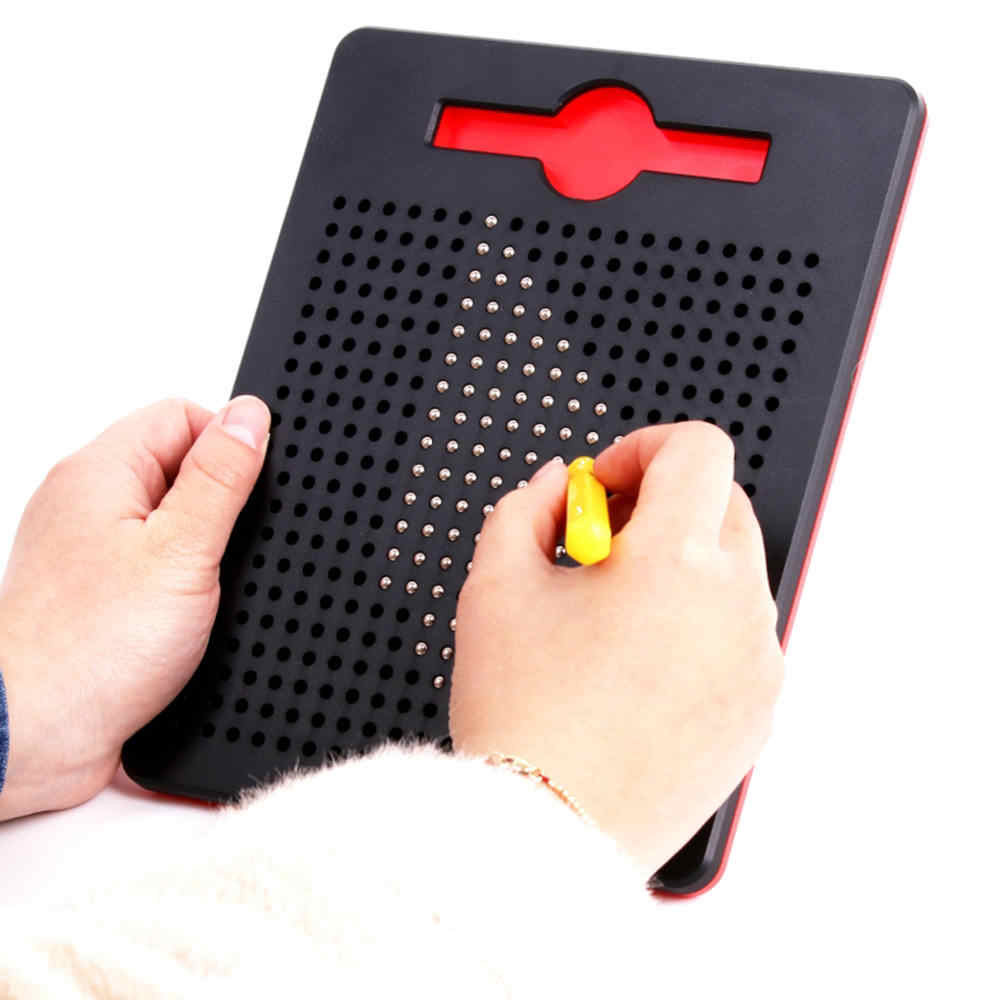 Рисовать на бумаге любят почти все дети, но это привычно и не всегда удобно. Не возьмешь же краски и карандаши в машину, можно испачкаться, да и рисунок от тряски вряд ли получится как надо. А вот с магнитным планшетом для рисования, можно создавать необычные изображения из металлических шариков и это понравится любому ребенку, независимо от пола и возраста. Игрушку можно взять в дорогу, на пикник, в поход или на дачу, да и дома рисовать на ней — это весьма увлекательное занятие. Рисовать на планшете могут дети дошкольного и школьного возраста. Планшет абсолютно безопасен, сами шарики в планшете не магнитные, магнит есть только в палочке. Игрушка надежно скручена винтиками и достать шарики никак не получится. Диаметр отверстий меньше чем диаметр металлических шариков, поэтому они точно не могут выпасть из набора. Такой планшет помогает развивать внимательность, терпение, воображение, абстрактное мышление, мелкую моторику. При работе по примерам формируются навыки следования алгоритму, выполнения задания по образцу и настойчивость. Самостоятельное творчество способствует развитию у детей творческих навыков и фантазии.