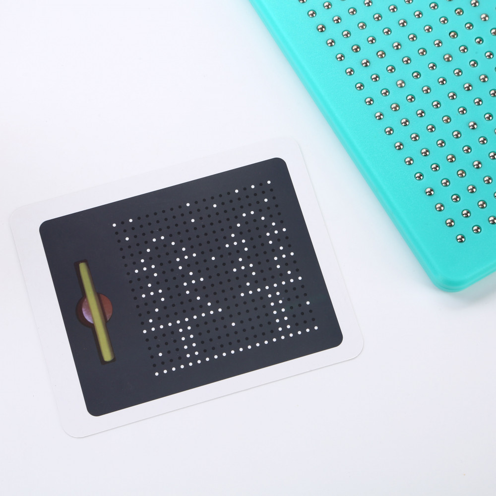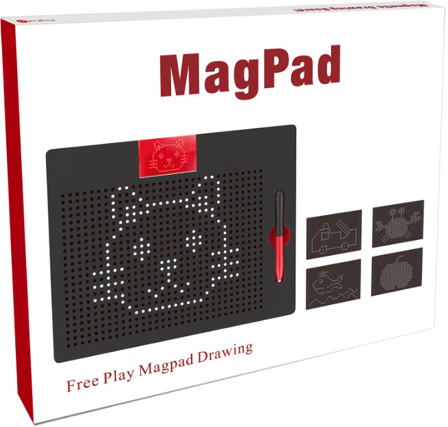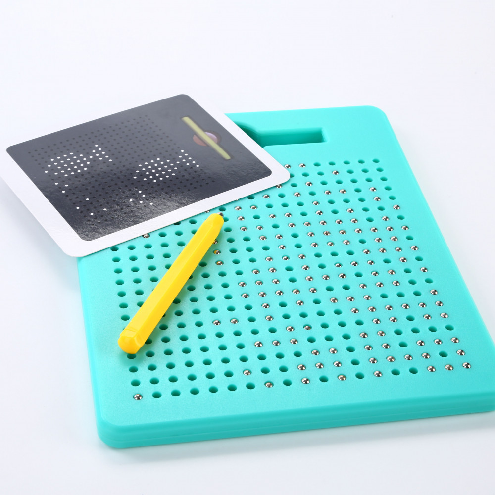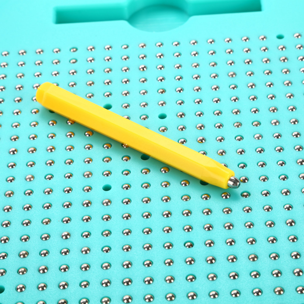Рисовать на бумаге любят почти все дети, но это привычно и не всегда удобно. Не возьмешь же краски и карандаши в машину, можно испачкаться, да и рисунок от тряски вряд ли получится как надо. А вот с магнитным планшетом для рисования, можно создавать необычные изображения из металлических шариков и это понравится любому ребенку, независимо от пола и возраста. Игрушку можно взять в дорогу, на пикник, в поход или на дачу, да и дома рисовать на ней — это весьма увлекательное занятие. Рисовать на планшете могут дети дошкольного и школьного возраста. Планшет абсолютно безопасен, сами шарики в планшете не магнитные, магнит есть только в палочке. Игрушка надежно скручена винтиками и достать шарики никак не получится. Диаметр отверстий меньше чем диаметр металлических шариков, поэтому они точно не могут выпасть из набора. Такой планшет помогает развивать внимательность, терпение, воображение, абстрактное мышление, мелкую моторику. При работе по примерам формируются навыки следования алгоритму, выполнения задания по образцу и настойчивость. Самостоятельное творчество способствует развитию у детей творческих навыков и фантазии.