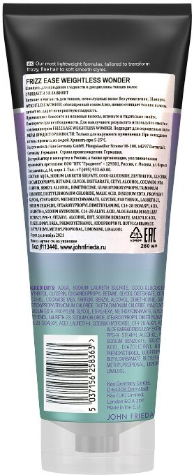 John Frieda Шампунь для гладкости волосВ данный момент этот товар отсутствует в продаже. Возможно, у нас найдется аналогичный или похожий товар здесь. Серия: Frizz Ease Шампунь для придания гладкости и дисциплины тонких, непослушных волос без утяжеления. Шампунь Weightless Wonder, обогащенный соком Алоэ,увлажняет и нежно очищает тонкие волосы, питает их, дарит невероятную гладкость. |
