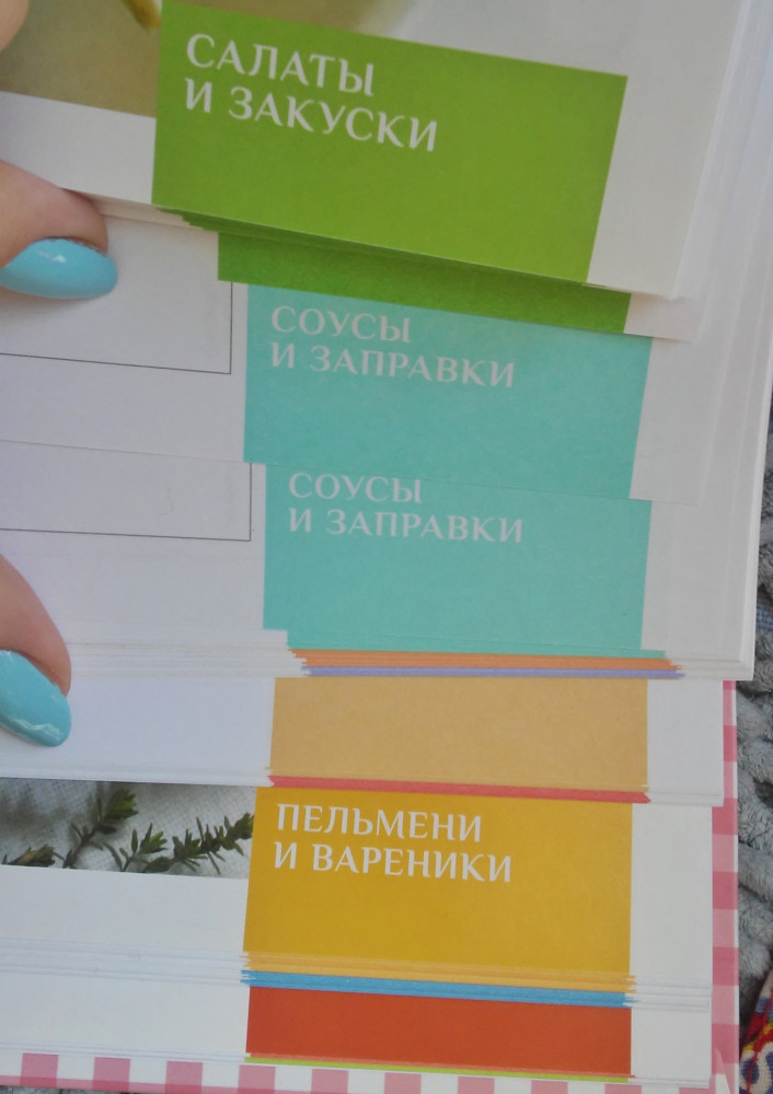 Книга очень понравилась. Приятная по цвету обложка. Качественное изготовление. Размером с общую тетрадь. Разделы оформлены в разном цвете, каждый раздел начат с цветной фото вставки. Единственным минусом считаю, что для ингредиентов отведено мало места. Книга подойдет на подарок.