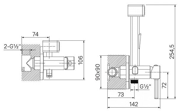 Встраиваемый смеситель с гигиеническим душем. Надежный корпус из прочной первичной латуни с пониженным содержанием свинца — стойкий к коррозии, резким изменениям давления и перепадам температуры воды. Увеличенное хромированное покрытие в 2,5 раза превышает европейский стандарт — смеситель будет выглядеть как новый благодаря стойкости к появлению царапин и потускнению.
