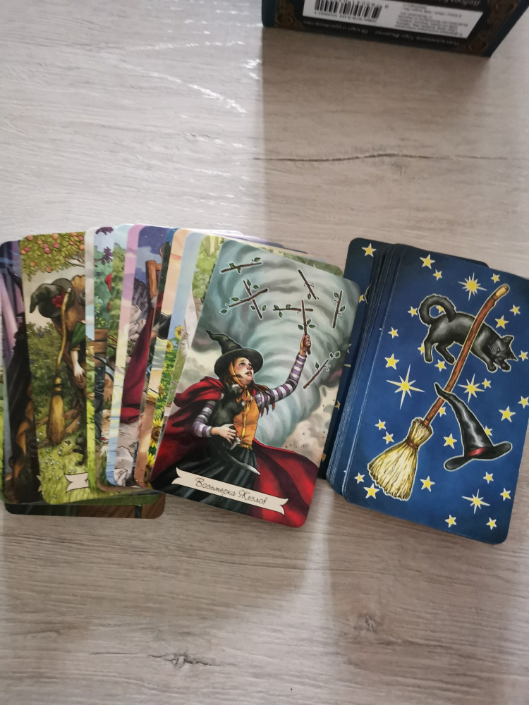 Колода очень яркая! Насыщенные цвета, говорящие картинки, глянцевая поверхность, очень удобный размер карт, книжка инструкция для начинающих и любителей, все это есть! Одни плюсы! Очень довольна приобретением! ❤️❤️❤️ Спасибо за быструю доставку!