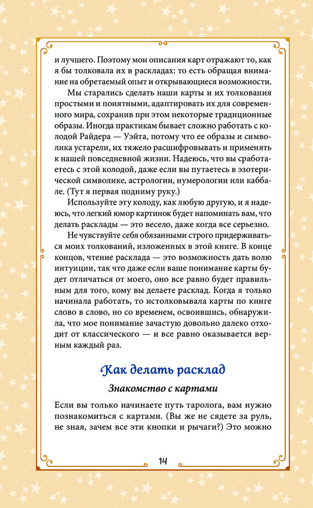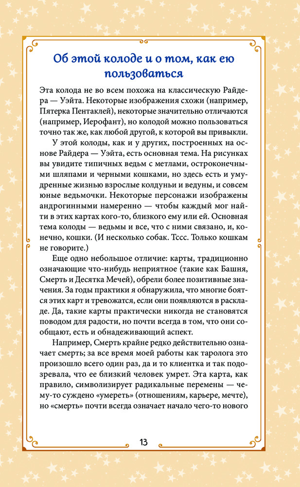 💳 Оплатить за товар можно при получении 🇰🇿 Есть бесплатная доставка по Казахстану от 1 дня 🎁 Копите бонусы с каждой покупки Серия: Карты для гаданий. Таро Everyday Witch Tarot — простая, практичная и жизнерадостная колода, которая жизненно необходима каждой уважающей себя ведьме! Завораживающие образы карт и их ясные, понятные значения подойдут каждому, кто хочет изучить искусство гадания на Таро и попрактиковаться в нем. Колода следует классической системе Райдера — Уэйта, однако ее автор, Дебора Блейк, добавила к мудрости классического Таро щепотку фирменного оптимизма и доброго юмора. Это современное Таро для современного мира, которое приветствует вдохновение и надежду. Однако несмотря на кажущуюся простоту и понятность образов, эти карты подходят и для серьезной работы, включающей поиск ответов на сложные жизненные вопросы. Руководство к Everyday Witch Tarot поможет вам не упустить все нюансы значений и позитивные возможности, скрывающиеся в колоде. В нем вы найдете рассказ об основных принципах работы с Таро, подробное описание карт и идеи для гадательных раскладов. |