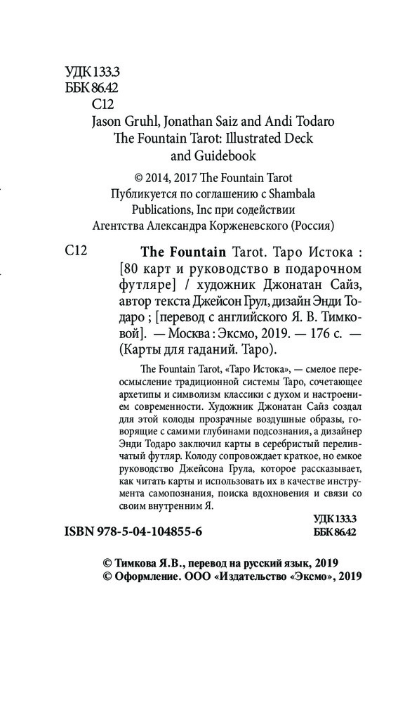 The Fountain Tarot. Таро Истока (80 карт и руководство в подарочном футляре)Джонатан Сайз, Джейсон Грул, Энди Тодаро -20% +408 плотный картон необычные образы серебристый срез плотная коробка глубокие значения
