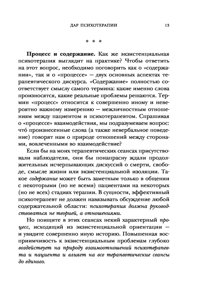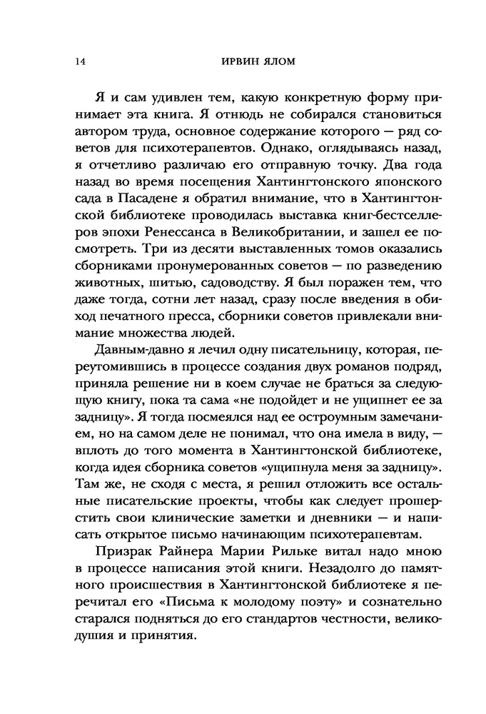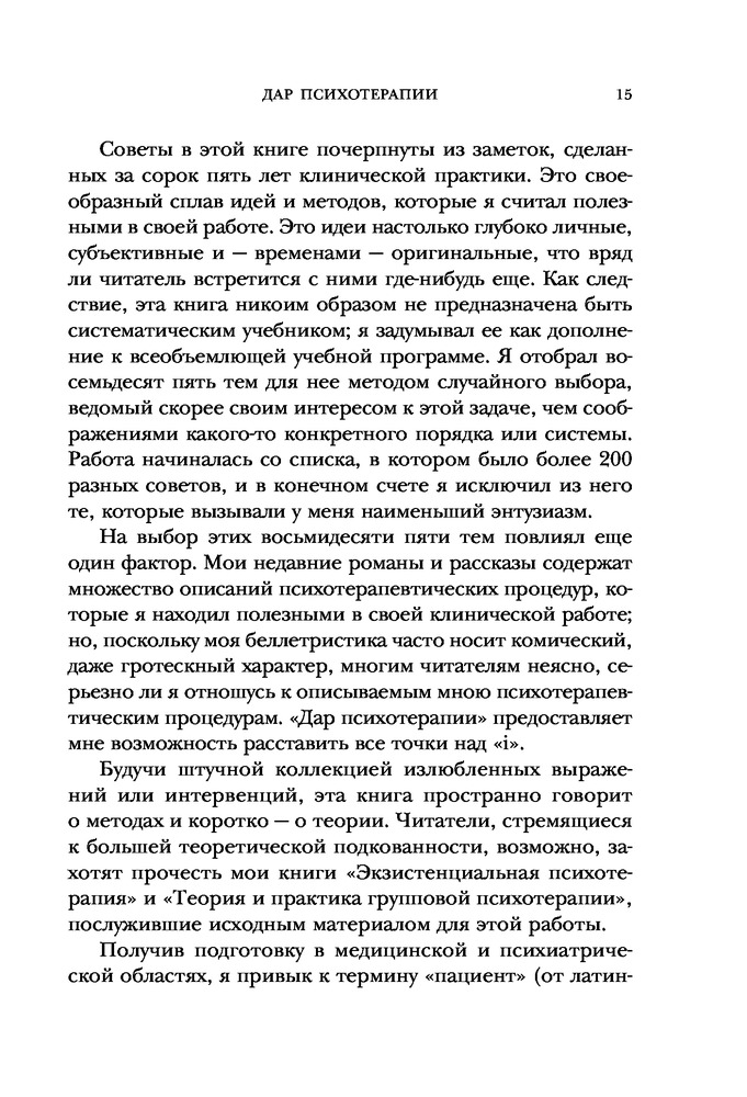 Люблю Ирвина Ялома, всё, что он пишет о психотерапии, о своём опыте в профессии, о своём жизненном пути ценно для меня. Когда делаешь первые шаги в профессии важна поддержка старших коллег, Ялом её даёт сполна. Достойное издание: крупный шрифт и белые листы.