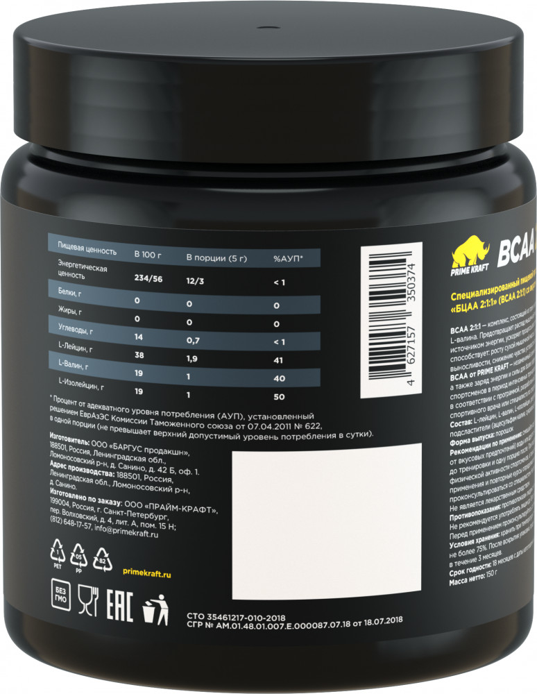 PRIMEKRAFT Комплекс аминокислот BCAA 2:1:1 со вкусом ананаса