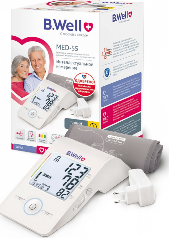 Автоматический тонометр B.Well MED-55 — это современный прибор с уникальными технологиями.