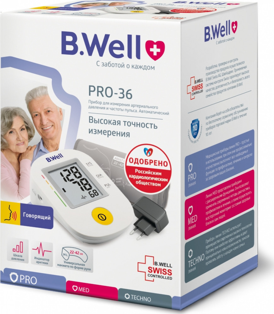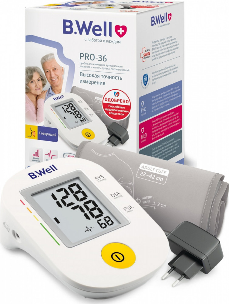 B.Well Тонометр автоматический на плечо с адаптером B.Well PRO-36+1008