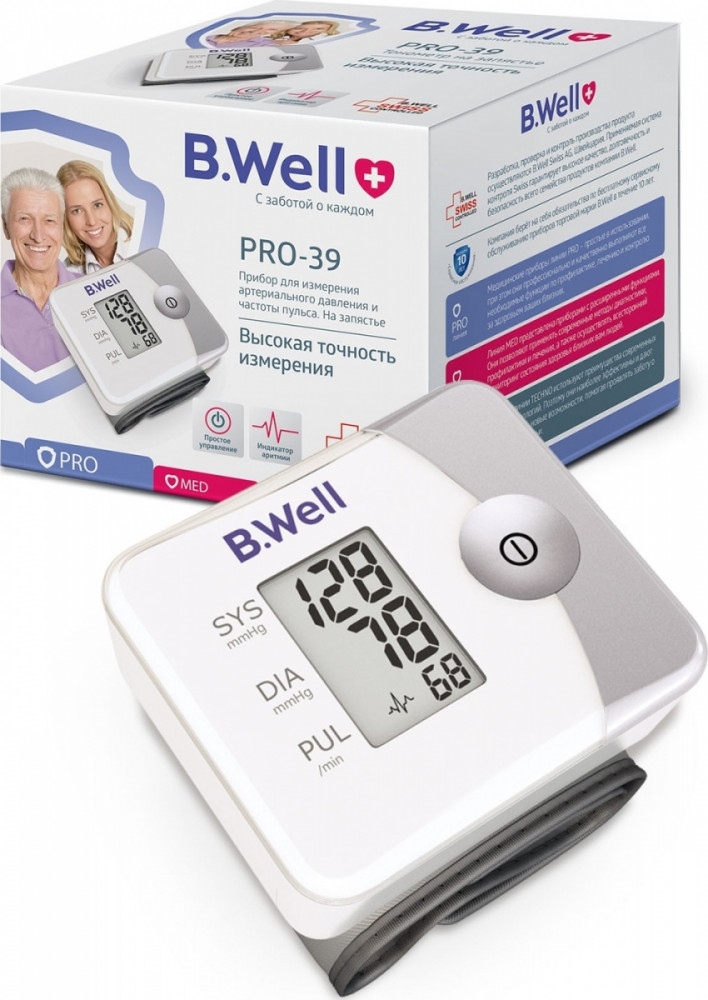 💳 Оплатить за товар можно при получении 🇰🇿 Есть бесплатная доставка по Казахстану от 1 дня 🎁 Копите бонусы с каждой покупки Тонометр на запястье B.Well PRO-39 — точный, надежный, простой в использовании прибор по невысокой цене, который предназначен для регулярного измерения и контроля уровня артериального давления. Рекомендован для использования в домашних условиях. |