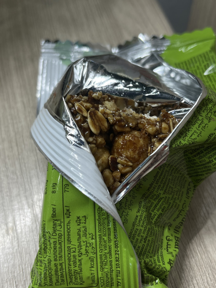 Пр вкусу понравился, почти не сладкий, для меня это плюс, но батончик жесткий, повторно не возьму.