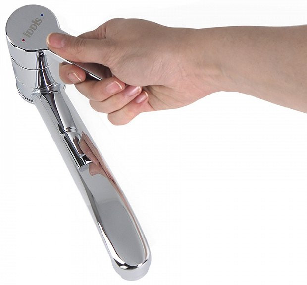 Смеситель удобен для всей семьи — продуманное соотношение высоты и длины излива и угол наклона аэратора позволяют с комфортом размещать руки под смесителем.