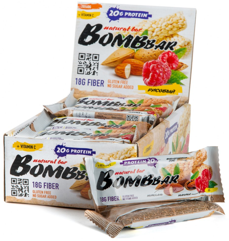 Bombbar Батончик протеиновый со вкусом малины и миндаля