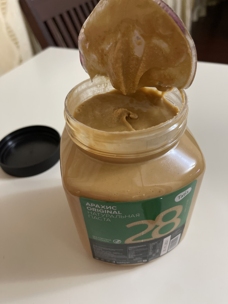 Заказывала арахисовую пасту много раз, разную. Эта самая вкусная. Не люблю слишком сладкую или солёную. И не нравится когда в пасте попадаются кусочки арахиса. Эта паста действительно очень вкусная. Консистенция средняя (сначала кажется что она жидкая, но это не так). И не вяжущая как паста некоторых других марок. В общем, пришлась по вкусу всей семье.