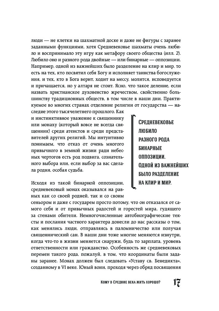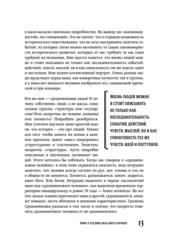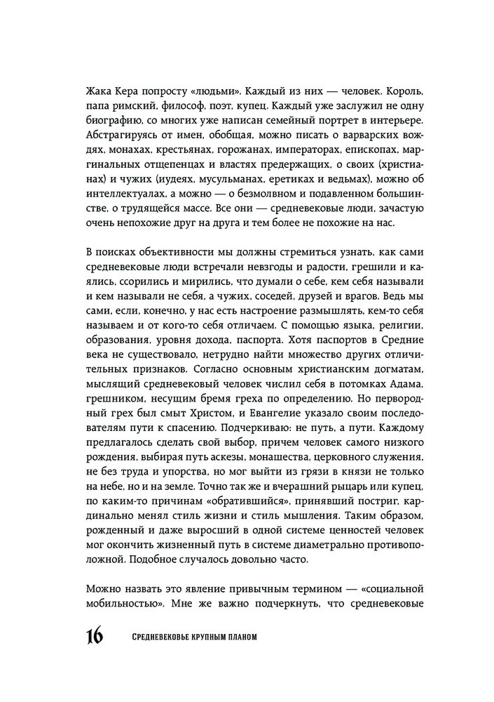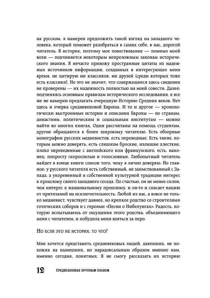 Очень скучная книга, похожа на нудную, неинтересную лекцию в университете. Слог автора очень своеобразный, читается тяжеловато, плюс, он постоянно скачет от одной мысли к другой. Информация достаточно поверхностная, чего-то нового вы не узнаете, "вау-эффекта" не будет.Плюс ставлю только за иллюстрации, источники в конце и качество бумаги. Научности в книге тоже нет, вот уж действительно, "средневековье КРУПНЫМ планом". Подойдет для тех, кто только-только начал интересоваться данной темой.