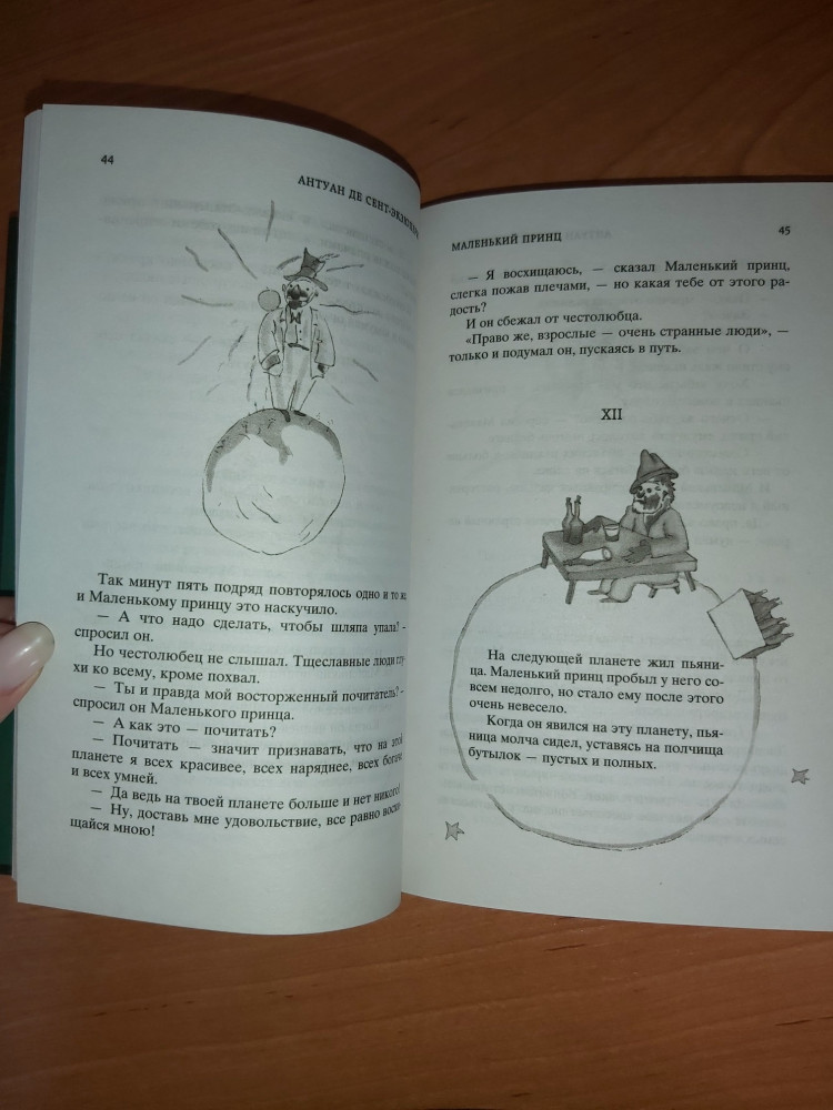 Если вы покупаете книгу ради "Маленького принца", то лучше выберите другую книгу или другое издание. Остальные 3 истории вы не сможете дочитать (очень не понравились), и эта книга в дальнейшем будет просто болтаться в вашей книжней полке оставшись недочитанной. Качество: хорошое, бумага газетная(так что осторожнее).