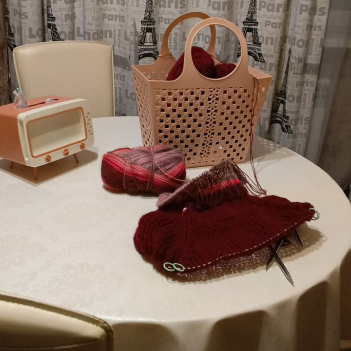 Насыщенный но не кричащий розовый цвет. Пряжа приятная тактильно. Да, немного скрипит при вязании. Ниточка местами слоится, что мешает при вязании. Общее впечатление положительное.