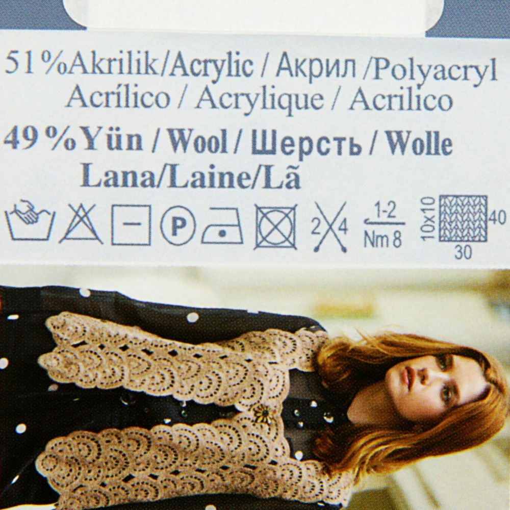 Я покупала пряжу #240. Очень понравилась, немного колкая, из мотка связала 2 шапочки мужские в обтяг головы(без лишнего объема и свисаниц) вязала в 2 нити с одного мотка.