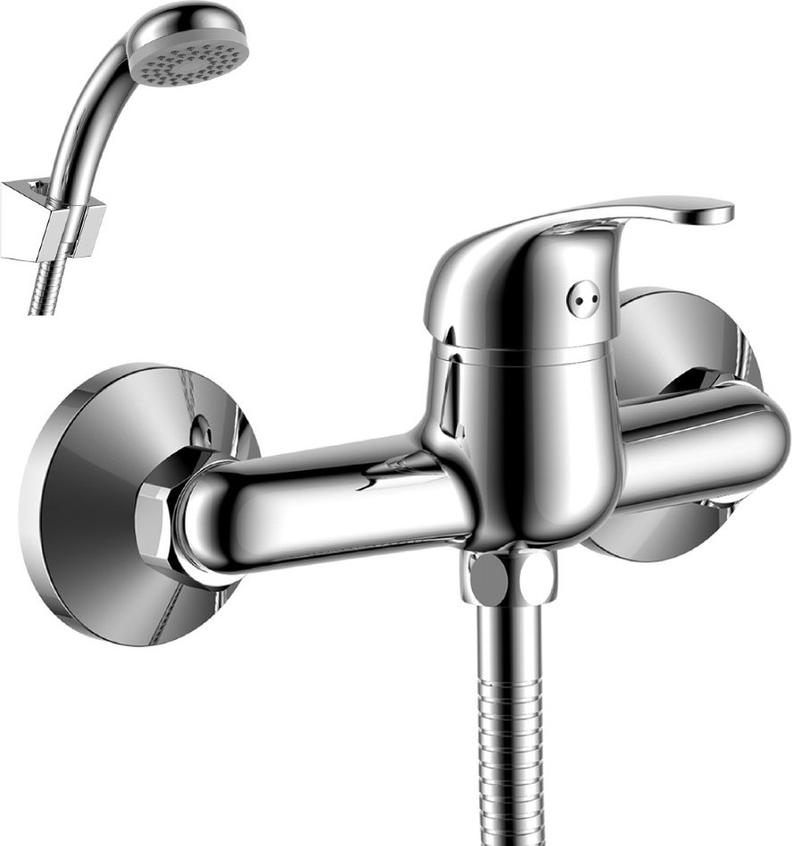 В комплект входит: шланг 1,5 м, настенное крепление, душевая лейка с функцией легкой очистки.