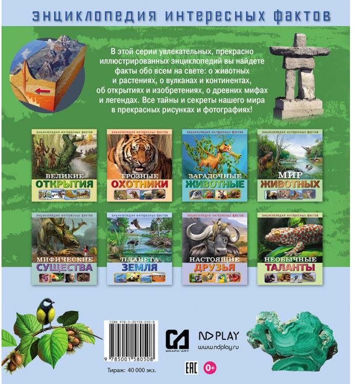 💳 Оплатить за товар можно при получении 🇰🇿 Есть бесплатная доставка по Казахстану от 1 дня 🎁 Копите бонусы с каждой покупки Серия: Энциклопедия интересных фактов В этой серии увлекательных, прекрасно иллюстрированных энциклопедий вы найдете факты обо всем на свете: о животных и растениях, о вулканах и континентах, об открытиях и изобретениях, о древних мифах и легендах. Все тайны и секреты нашего мира в прекрасных рисунках и фотографиях! Познавательные книжки станут незаменимым помощником в развитии и обучении вашего ребёнка. |