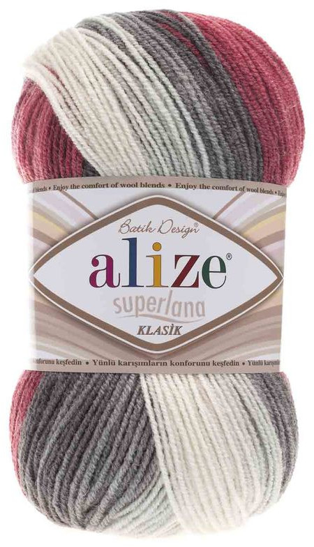 Турецкая классическая пряжа «Superlana klasik batik» — для тех, кто любит «буйство красок». Цветовые узоры, безусловно, украшают вязаные вещи, делают их нарядными и дают большой простор для творческих фантазий. Однако вывязывать такие узоры из одноцветной пряжи — сложная задача даже для опытных вязальщиц. Пряжа «Superlana klasik batik» длинно-секционного крашения существенно упрощает эту задачу. Цветные узоры у вас могут получиться «сами собой», в процессе вязания сплошного полотна. Представленные здесь девять артикулов «Superlana klasik batik» — это несколько десятков различных вариантов окраски секций, от нейтрально серой до изумрудно зелёной. Нить средней толщины, по отзывам рукодельниц, отлично скользит по крючку и не распускается. Пряжа пригодна и для вязания и на спицах. Готовые изделия отлично держат форму и больше всего подходят для пополнения весенне-осеннего гардероба, это пуловеры, кардиганы, платья, шапки, шарфы, снуды.