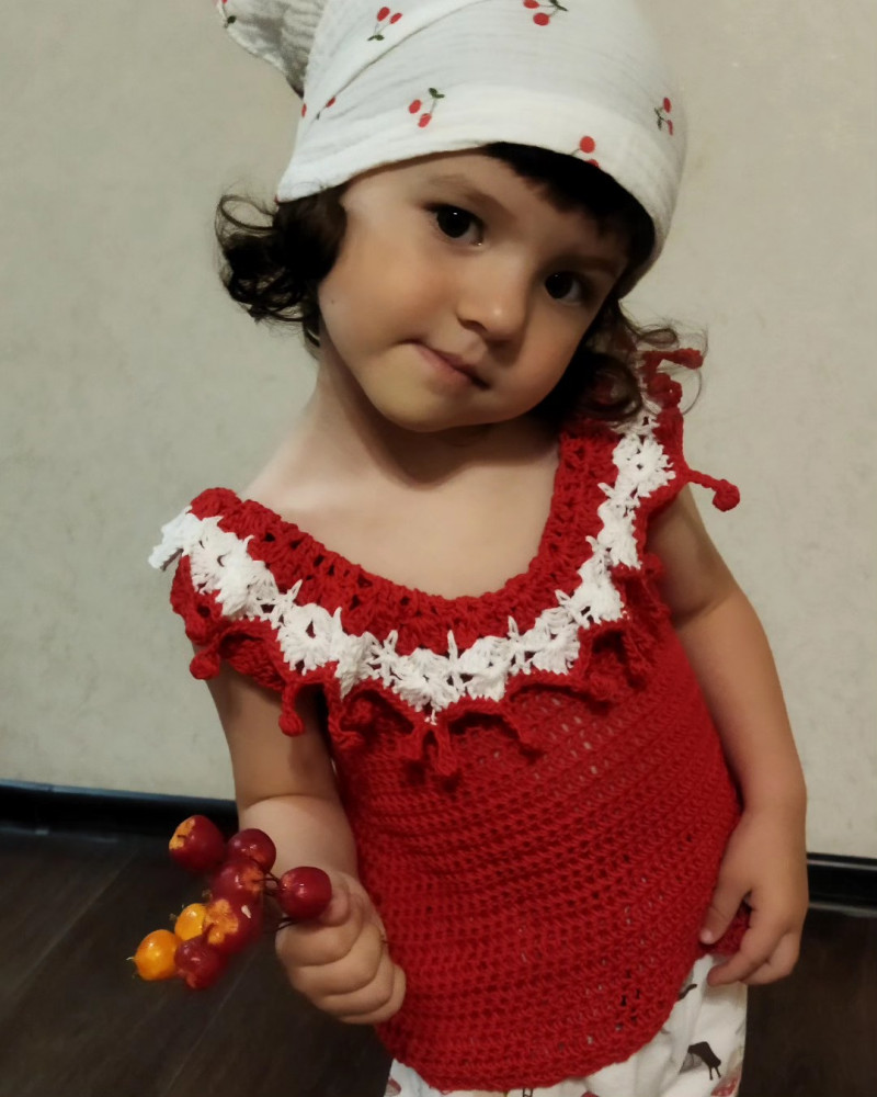 Начала вязать внучке кофту, очень нравится и цвет, и текстура. Спасибо за доставку.