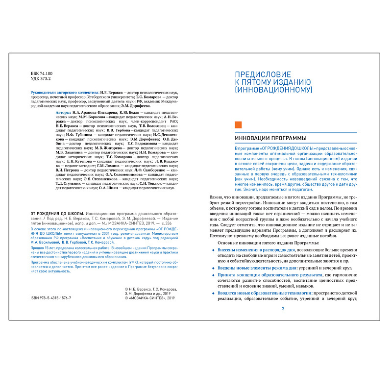 От рождения до школы. Инновационная программа дошкольного образованияВ данный момент этот товар отсутствует в продаже. Возможно, у нас найдется аналогичный или похожий товар здесь. Серия: От рождения до школы В программе «От рождения до школы» представлены основные компоненты оптимальной организации образовательно-воспитательного процесса. В основе пятого, инновационного, переиздания лежит выпущенная в 2004 году, рекомендованная Министерством образования РФ программа «Воспитание и обучение в детском саду» под редакцией М. А. Васильевой, В. В. Гербовой, Т. С. Комаровой. |