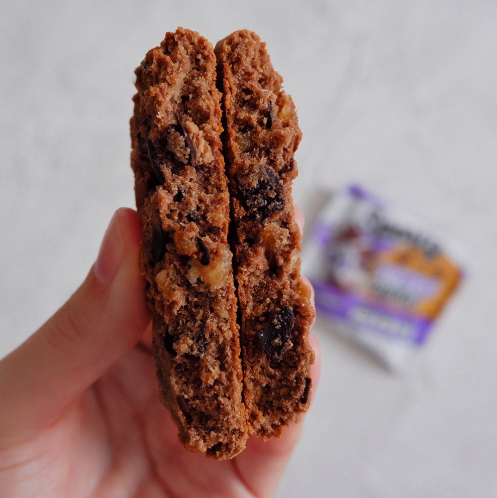 Заказала с шоколадом. Не осень вкусное печенье, текстура как будто не пропеченное. И цукаты вообще не в тему в составе. В общем мне не понравилось.