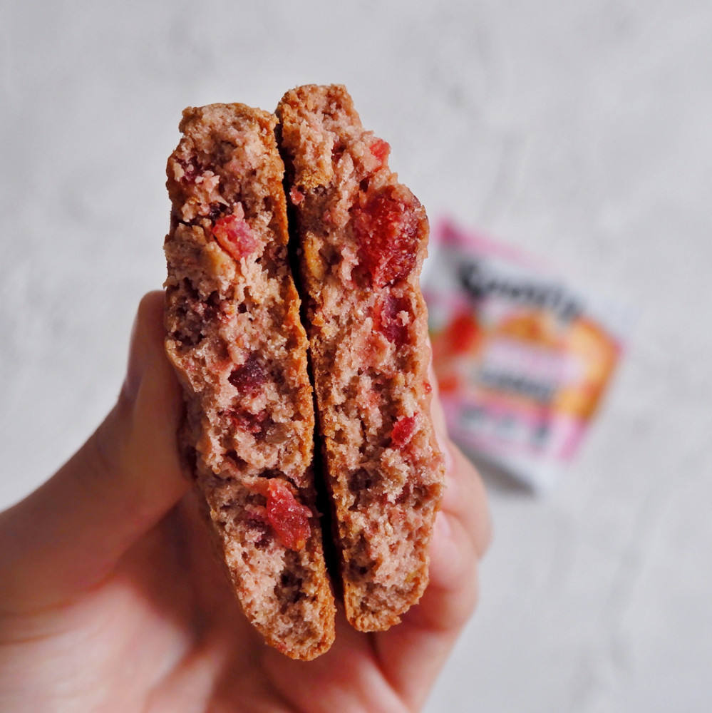 Понравился, особенно с клубникой. В меру приторный, сможет заменить вам настоящее печенье.