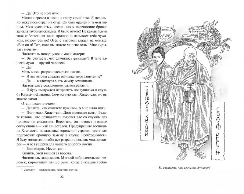 Вскоре правительство Чистой Земли учредит службу Карпа-и-Дракона, в обязанности которой войдут разбирательства по особым делам, связанным с даром будды. А через сто лет после молитвы Кэннё у юного самурая из Акаямы умирает один из ближайших родственников, и эта смерть кладет начало удивительным событиям, достойным лечь в имперский архив.