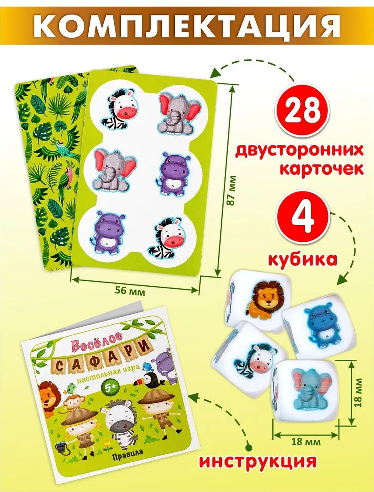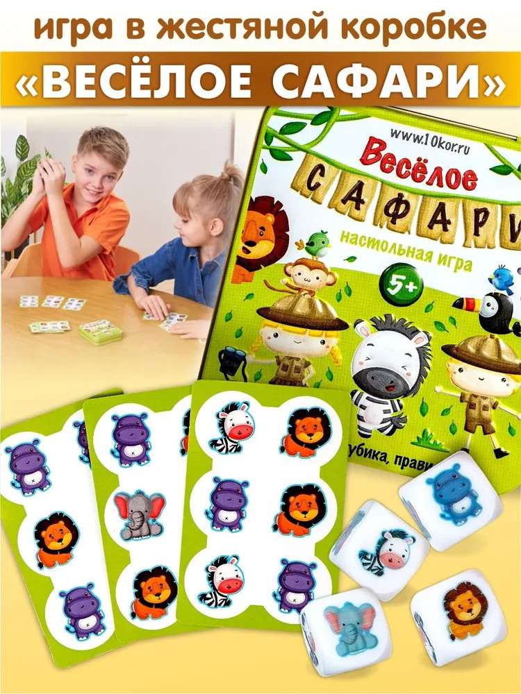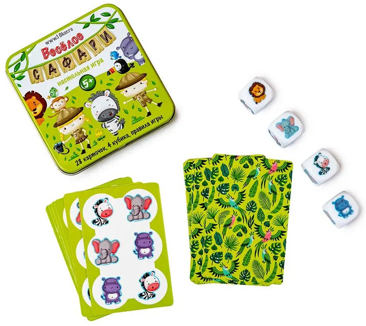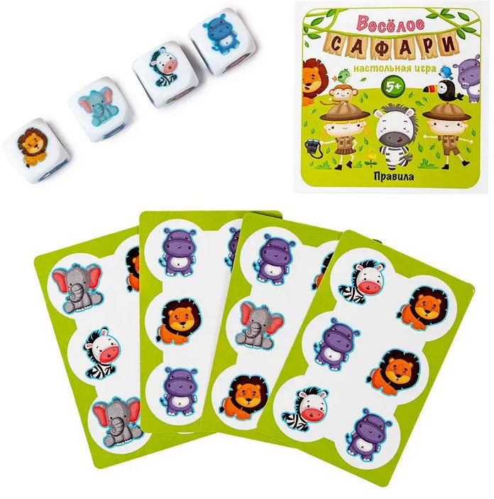 💳 Оплатить за товар можно при получении 🇰🇿 Есть бесплатная доставка по Казахстану 🎁 Копите бонусы с каждой покупки «Веселое сафари» — игра для самых быстрых и внимательных. Кубики подскажут, кого поймать: ищи нужного персонажа по форме, цвету и эмоции. В колоде — 28 карт, из которых 27 карт животных и карта-выручалка. Перед началом игры все карты раскладываются на столе, а карта-выручалка кладется в центре. Подобная игра поможет детям увлекательно провести время, развивая при этом внимательность, логику и пространственное мышление. |
