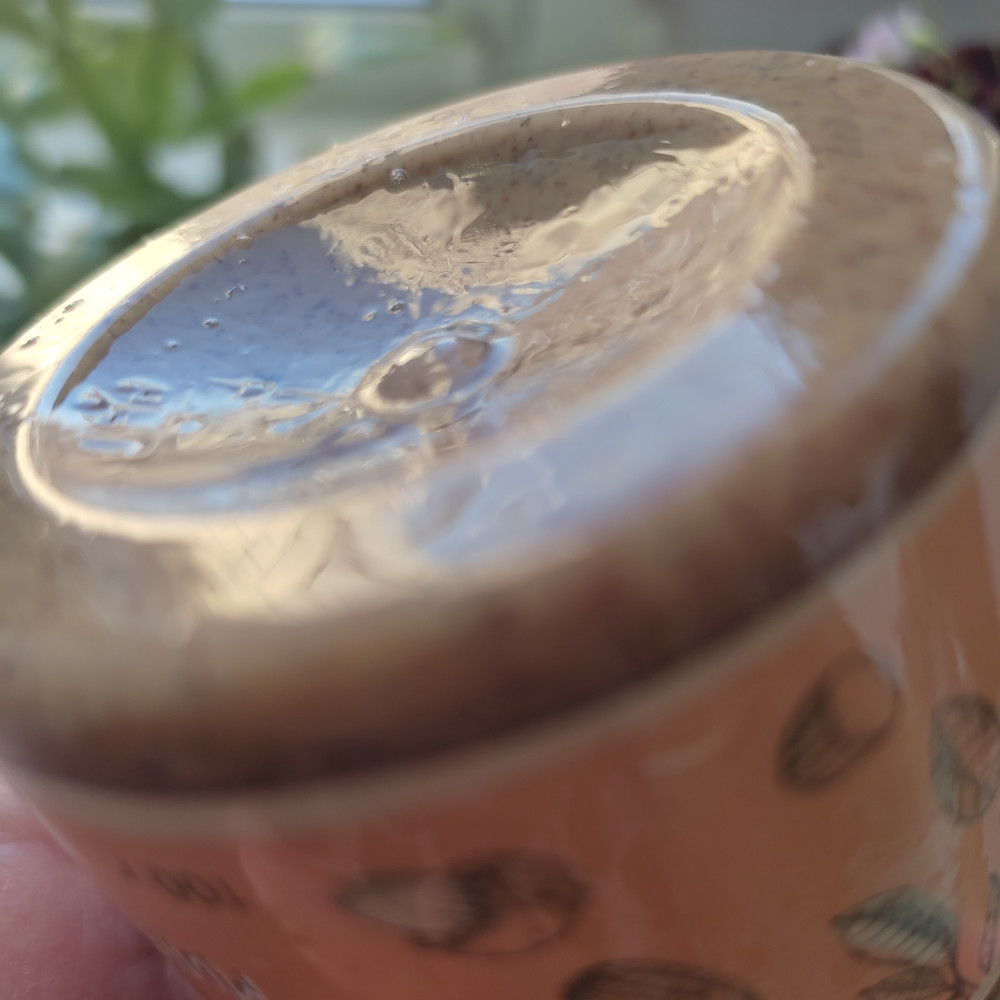 Баночка была вся жирная. Внутренняя мембрана отклеилась и жидкость претекла через крышку.