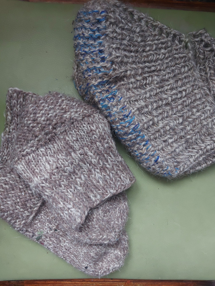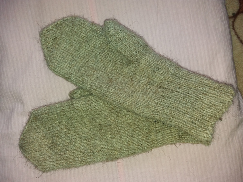 Связала варежки.Выстирала.Пахнет овечьей шерстью.После стирки стали мягче и плотнее.Вязала в одну нить спицами 2.
