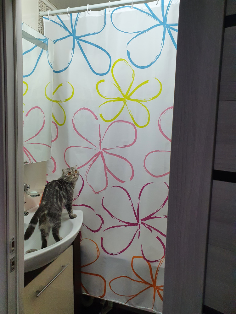 очень понравилась и ткань и кольца и отверстия под кольца и обработка нижнего края шторы.