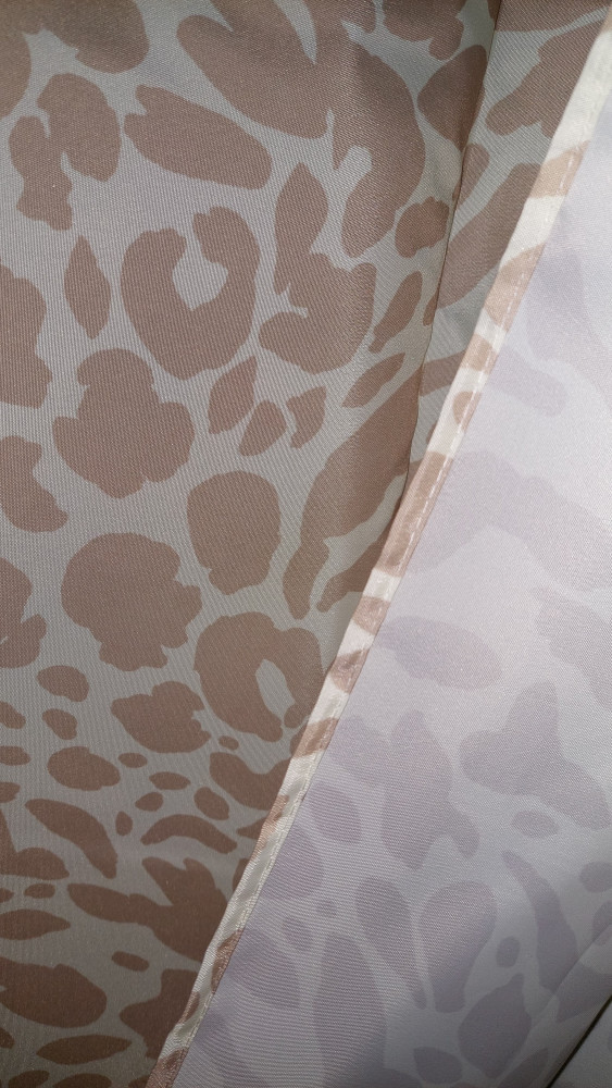 Хорошая штора, не двусторонняя, длинная, прочная, кольца стильные)) штора не яркая, бежевые пятна и желтоватый фон