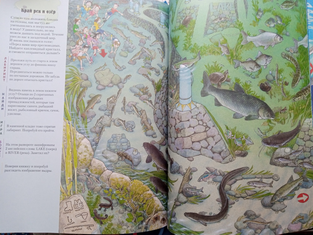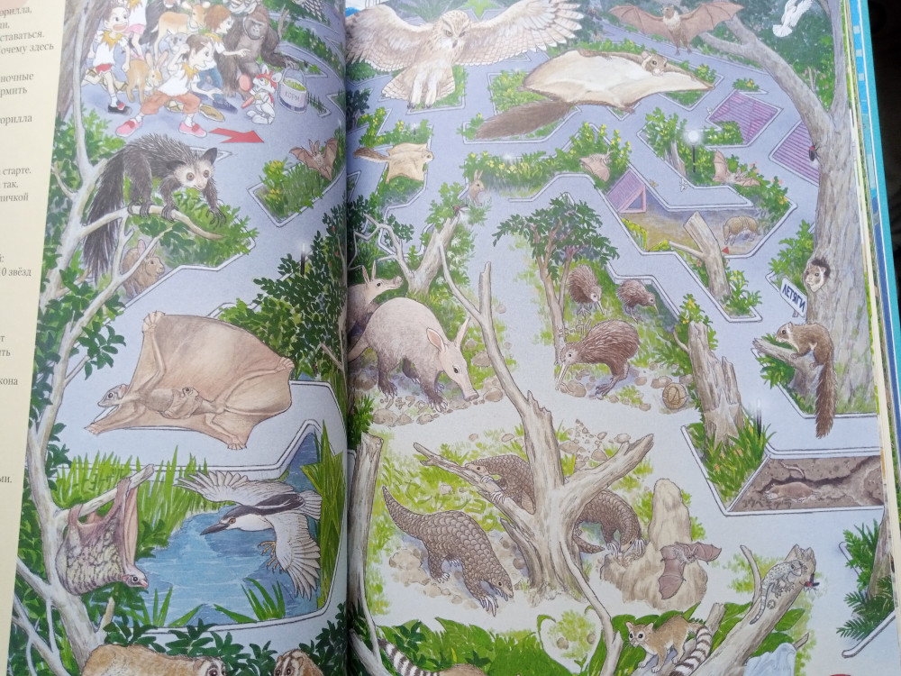 Всем, кто еще сомневается, брать эту книгу или не брать, ответ: "Берите, не раздумывая"! За такую цену это просто сокровище!Много лабиринтов, огромное количество животных, здесь и география, и биология, и тренировка внимания, памяти, логика, много оптических иллюзий.