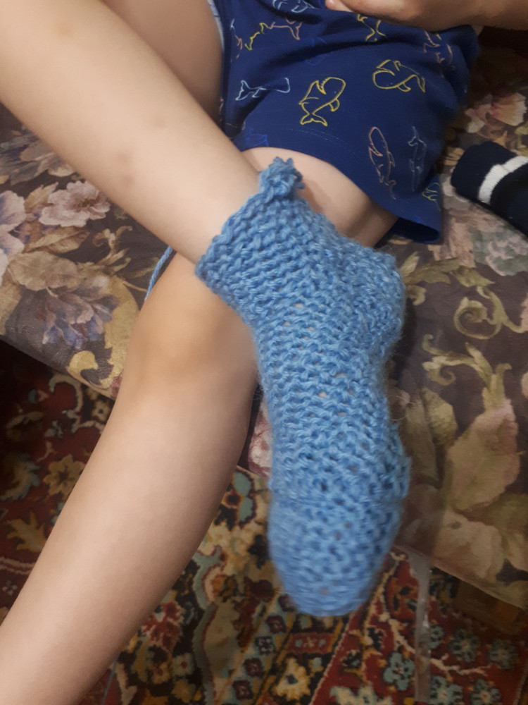 Пряжа очень понравилась, не колется, цвет соответствует заказывала голубой, вязать только учусь но с мотком проблем не возникло, крючок использовала 4.5, петельки ложатся легко и аккуратно, распускается тоже без затруднений. Вязала ребенку носочки, доволен, носит с удовольствием снимать не хочет)))